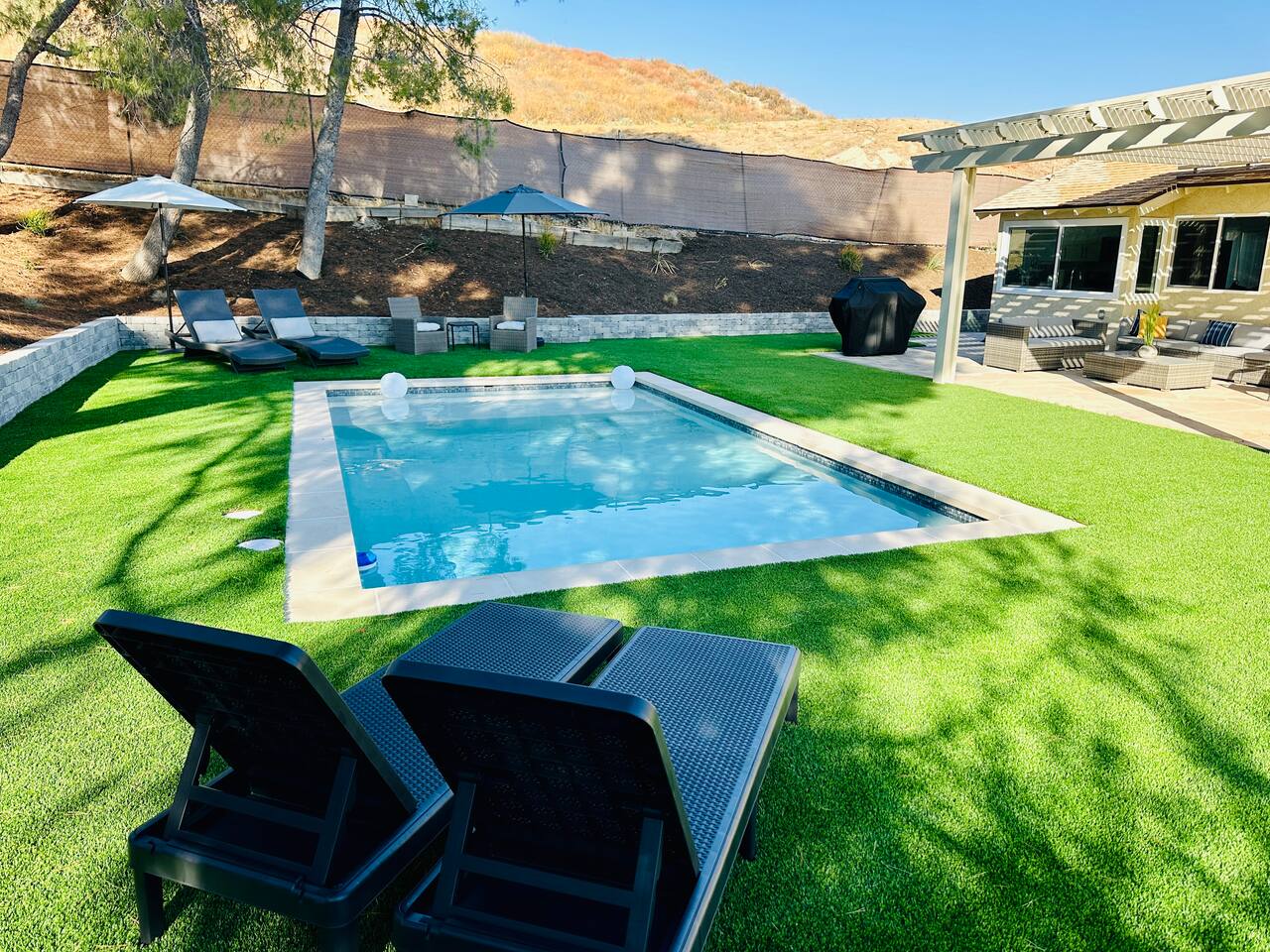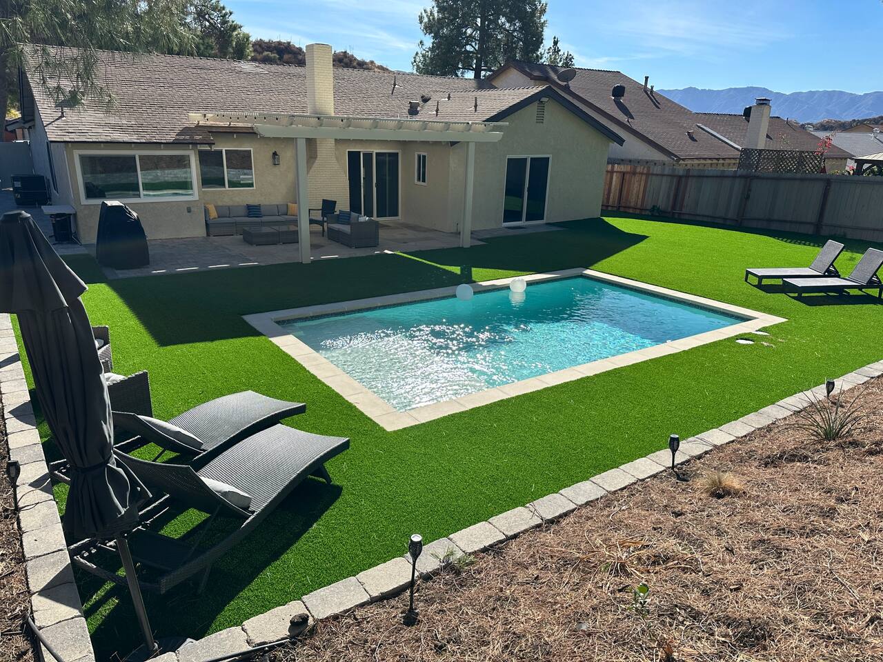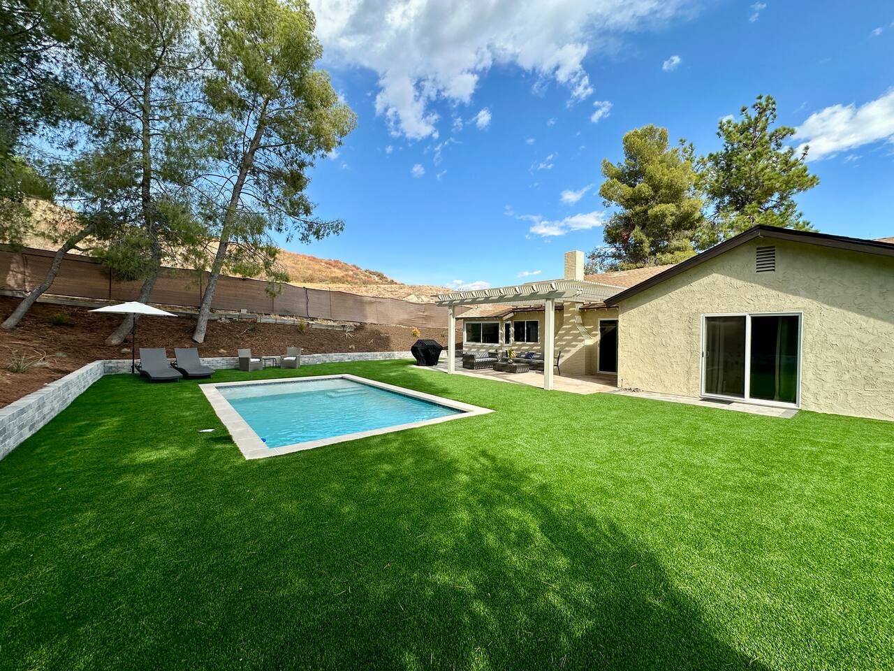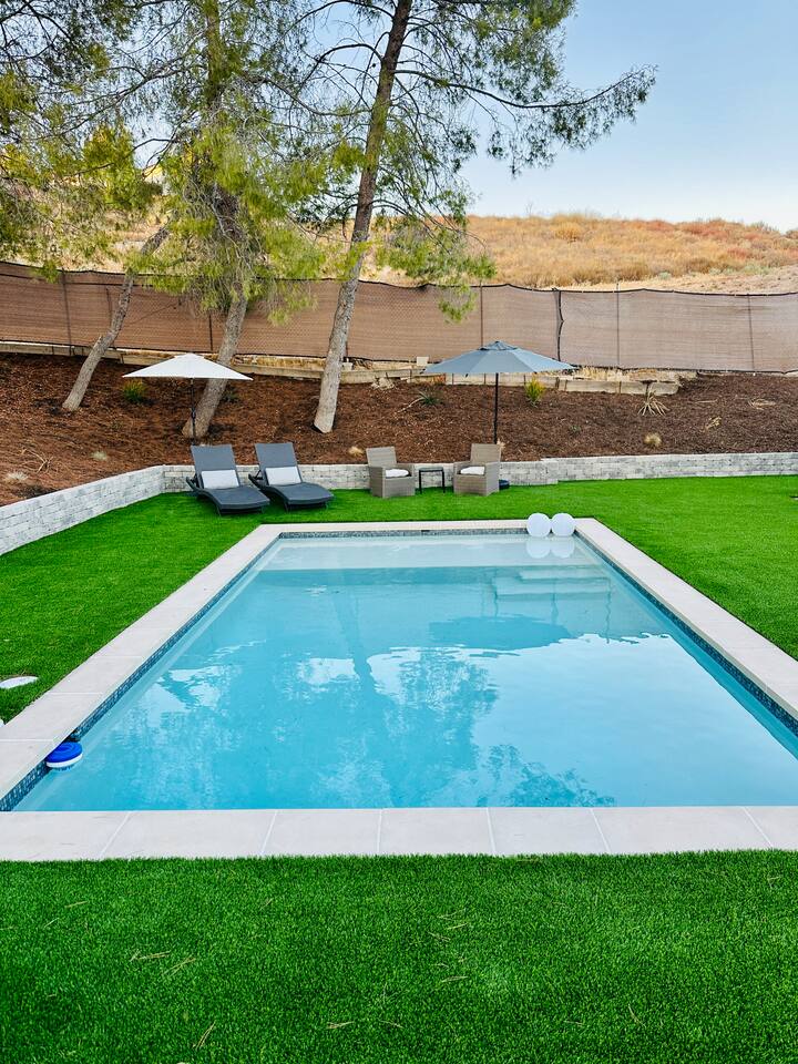 Experience a luxury & cozy canyon retreat in Santa Clarita! Perfect for families & groups (sleeps up to 10) and features a private large backyard with a pool (pool heating $90/day), BBQ, outdoor seating, and a fireplace. Nestled in a quiet and safe neighborhood in Canyon Country, near Six Flags Magic Mountain (14 mi), Vasquez Rocks (10 mi), and Placerita Canyon (7 mi). Enjoy fast WiFi, smart TVs, and a fully equipped kitchen. Book now or message with questions - your relaxing getaway awaits!