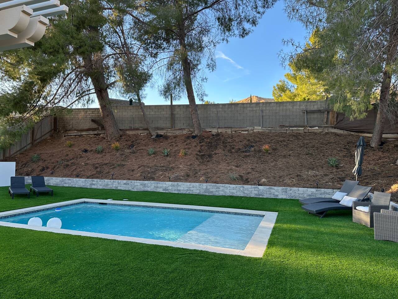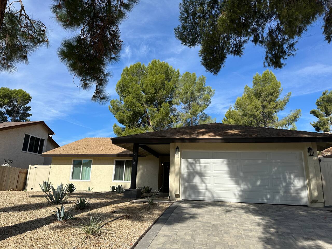 Nestled in a serene canyon, this spacious home features a fully equipped kitchen, perfect for preparing meals. The expansive living room boasts beautiful high vaulted ceilings and includes a TV, fireplace, and two couches that can be extended for relaxation or converted into a queen and twin bed. 🛌 Sleeping Arrangements: • Master Bedroom: King bed & TV (sleeps 2) • Mid Bedroom: Queen bed (sleeps 2) • Third Bedroom: Full-size bed + two twin beds (one twin pulls up from underneath, adjustable to standard height) - sleeps 3 • Living Room: two sofas - one converts into a queen bed, and the other into a full bed. They are perfect for relaxing by the fireplace and TV or providing extra sleeping space for up to 3 people. Each bedroom offers ample closet space and comfort. 🛁 Bathrooms: • Two full bathrooms (one with a stand-up shower, the other with a relaxing tub) 🌴 Outdoor Oasis: Enjoy plenty of outdoor space featuring: • 4 pool loungers • Umbrella • Comfortable couches and tables • An additional foldable table and chairs for poolside BBQs and gatherings I provide plenty of towels, including pool towels, as well as shower gel, shampoo, conditioner, and body wash. I’ve arranged everything to ensure you have a wonderful stay filled with great memories!