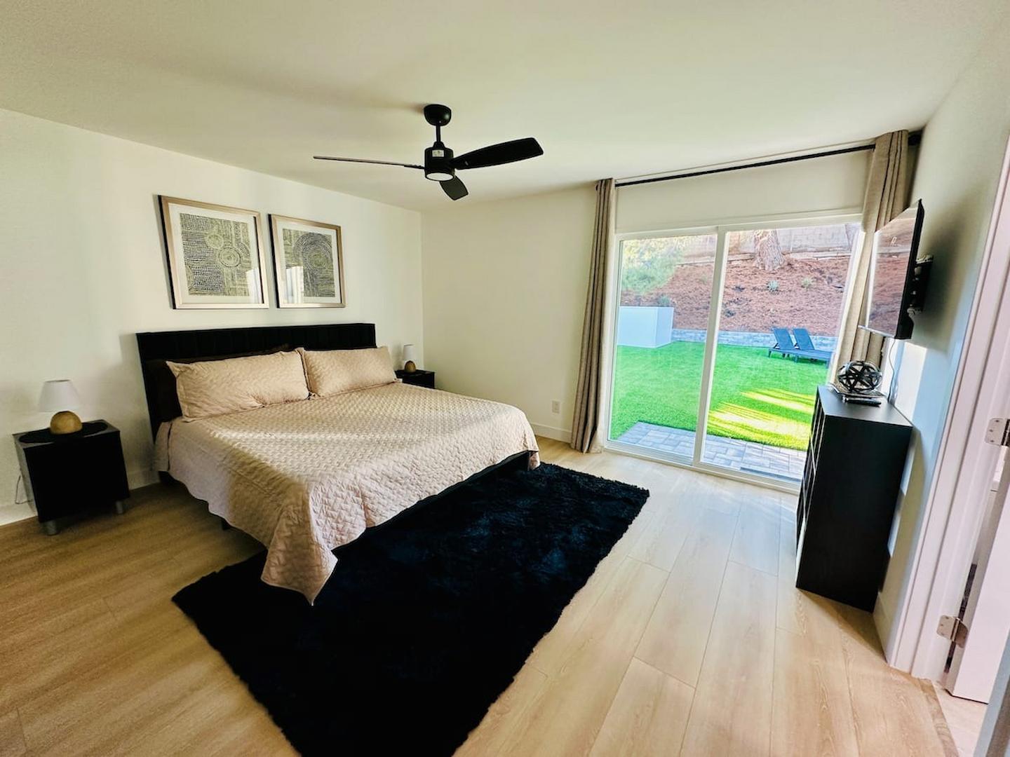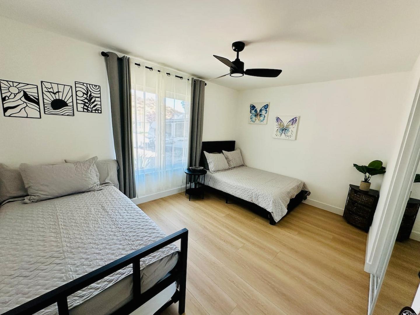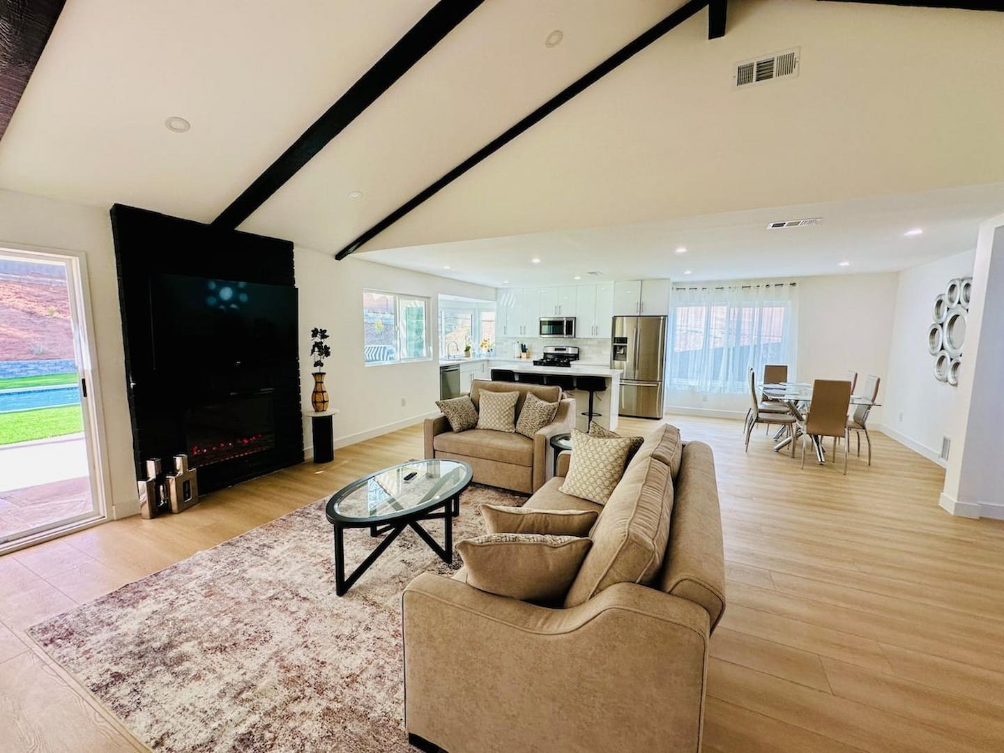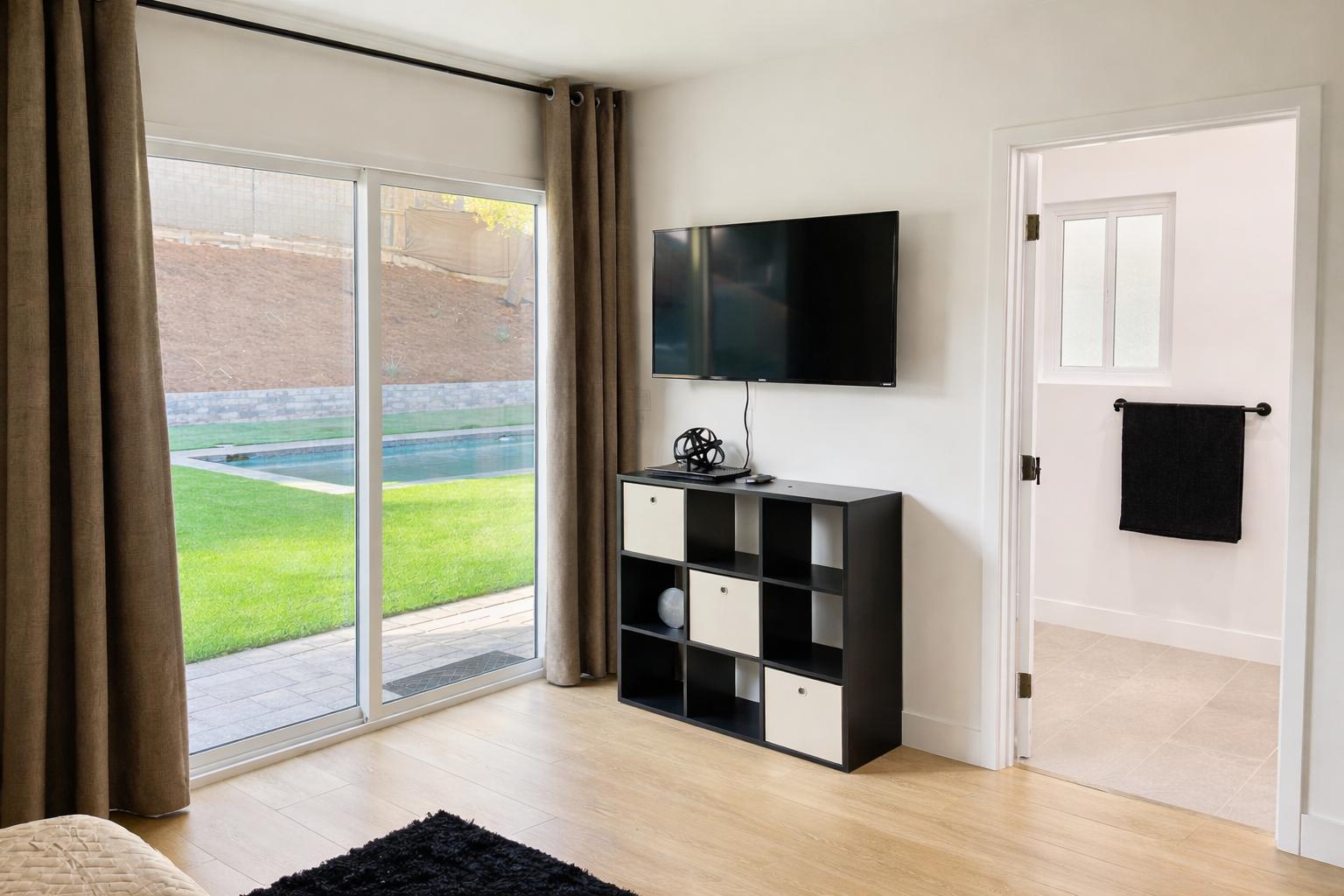 Nestled in a serene canyon, this spacious home features a fully equipped kitchen, perfect for preparing meals. The expansive living room boasts beautiful high vaulted ceilings and includes a TV, fireplace, and two couches that can be extended for relaxation or converted into a queen and twin bed. 🛌 Sleeping Arrangements: • Master Bedroom: King bed & TV (sleeps 2) • Mid Bedroom: Queen bed (sleeps 2) • Third Bedroom: Full-size bed + two twin beds (one twin pulls up from underneath, adjustable to standard height) - sleeps 3 • Living Room: two sofas - one converts into a queen bed, and the other into a full bed. They are perfect for relaxing by the fireplace and TV or providing extra sleeping space for up to 3 people. Each bedroom offers ample closet space and comfort. 🛁 Bathrooms: • Two full bathrooms (one with a stand-up shower, the other with a relaxing tub) 🌴 Outdoor Oasis: Enjoy plenty of outdoor space featuring: • 4 pool loungers • Umbrella • Comfortable couches and tables • An additional foldable table and chairs for poolside BBQs and gatherings I provide plenty of towels, including pool towels, as well as shower gel, shampoo, conditioner, and body wash. I’ve arranged everything to ensure you have a wonderful stay filled with great memories!