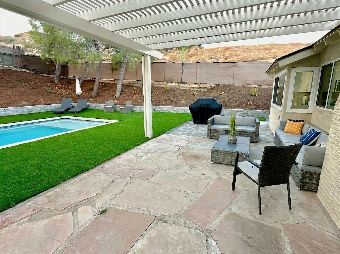 Experience a luxury & cozy canyon retreat in Santa Clarita! Perfect for families & groups (sleeps up to 10) and features a private large backyard with a pool (pool heating $90/day), BBQ, outdoor seating, and a fireplace. Nestled in a quiet and safe neighborhood in Canyon Country, near Six Flags Magic Mountain (14 mi), Vasquez Rocks (10 mi), and Placerita Canyon (7 mi). Enjoy fast WiFi, smart TVs, and a fully equipped kitchen. Book now or message with questions - your relaxing getaway awaits!